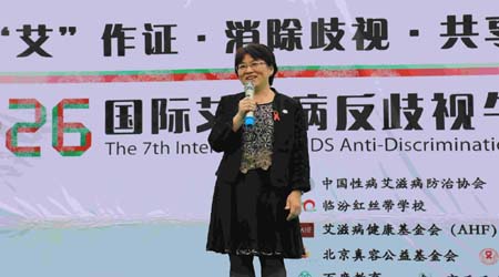 (艾滋病健康基金会(AHF)中国项目经理金霞带来亚洲局副局长的对活动的祝福)