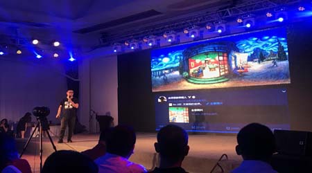 优秀全景创作者“草帽”陈凯为现场诸位带来全景绘画制作分享。他开创性的将梵高的《夜空下的咖啡馆》等多幅著名作品通过全景的方式展现,带来视觉新体验。陈凯同时展示了他近期制作的《冰湖之战》等诸多全景绘画作品,并对手绘全景图的商业化应用领域进行了分享,他认为游戏包装宣传是一个重要的渠道,此外,网络电商包装宣传、移动端互动小游戏、特效相机app、动态手机全景壁纸app等领域同样拥有商机。
