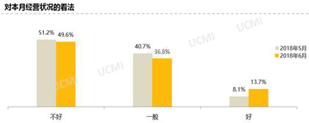 调查显示,经销商认为6月份的经营状况比5月份差,认为经营状况“不好”的经销商比例为49.6%,认为“好”的比例为13.7%,认为“一般”的比例为36.8%。6月份二手车销量下降,整体经营状况不是很好。
