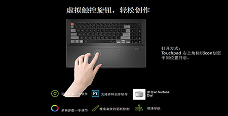 配套全球首个DialPad虚拟旋钮,瞩目非凡。与触控板搭配,可以通过简单的手势轻松唤醒,进行多样化的交互性操作,从而提高创作体验与效率。并且,可适配第三方软件及支持PS、AI等多种创作软件,精准高效的笔刷控制、顺滑导航、多数参数一手调节,更是为创作者带来即兴的创作灵感。