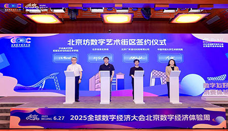 数字技术与艺术创作的结合展示,是本次活动的重要方向之一,在启动仪式上举行了数字艺术街区签约环节。中央美术学院实验艺术与科技艺术学院,中国传媒大学艺术研究院等多方代表共同签署了合作协议,旨在推动数字技术与艺术创作的深度融合,数字融入艺术创作,让艺术丰富数字内容,让市民感受数字与艺术的创新魅力。未来北京坊数字综合体也将成为两所大学的实践基地,为大学师生提供技术和场地支持,共同打造数字艺术产品和IP,推动数字艺术产业的快速发展。